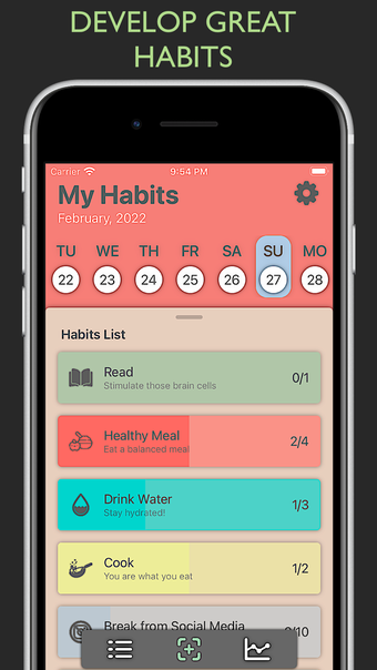 นอกจากนี้ แอป Habit Tracker ยังช่วยให้ผู้ใช้ติดตามความก้าวหน้าของตนได้อย่างมีประสิทธิภาพด้วยสถิติที่ละเอียด เช่น ความสำเร็จ การต่อเนื่อง และอัตราการเสร็จสิ้นที่แสดงผ่านกราฟที่น่าสนใจ อินเตอร์เฟซผู้ใช้ที่ intuituve ทำให้กระบวนการติดตามนิสัยเป็นเรื่องง่าย ทำให้ผู้ใช้สามารถทำเครื่องหมายการทำงานเสร็จสิ้นได้อย่างง่ายด้วยการ swipe